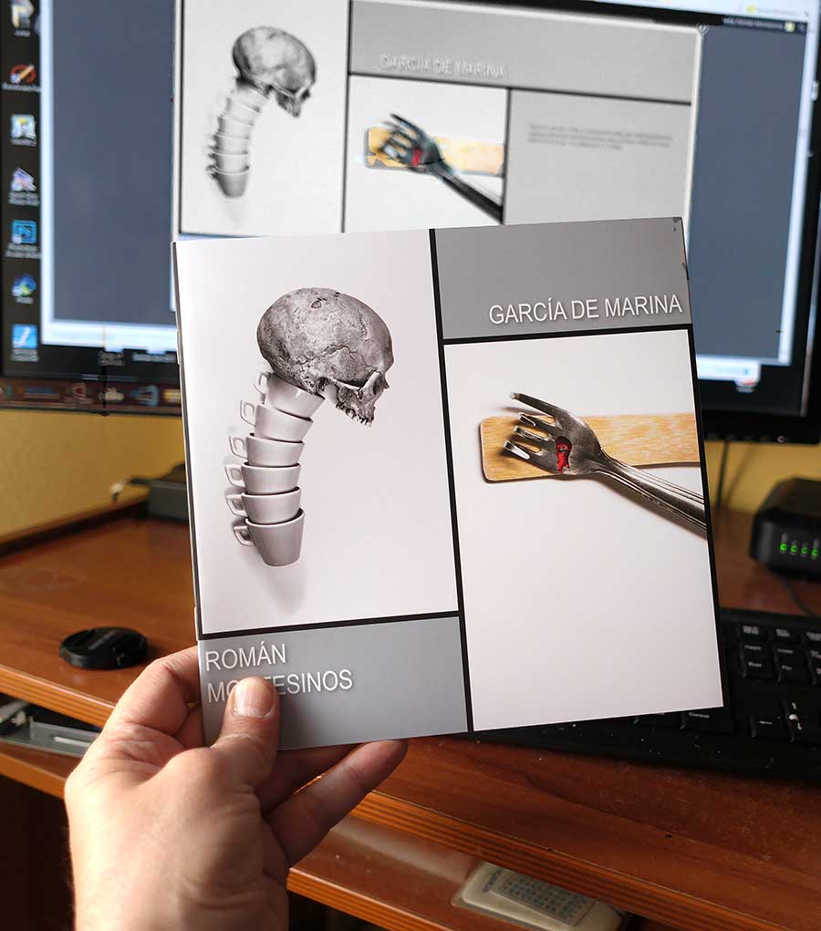 Hoy ha llegado de la imprenta al Quiosco Alfonso el catálogo de la próxima exposición «Racionalizando lo irreal» de García de Marina y Román Montesinos (el que suscribe). Es de una gran calidad de impresión en el cual los blanco y negros de las fotografías lo son, lo que denota un gran trabajo por parte de los técnicos. 22 fotografías puramente conceptuales y un prólogo de Paco Pestana.
