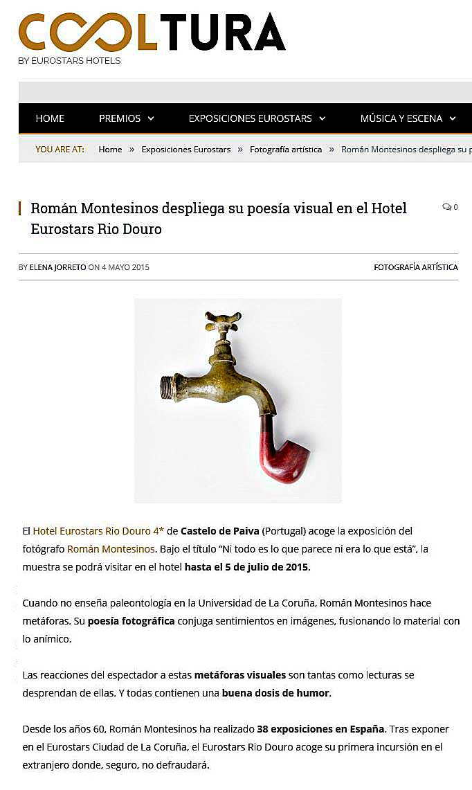 En mi caso, la periodista Elena Jorreto del departamento que cité más arriba, se ha encargado de hacer una entrada en el blog «Cultura» sobre la exposición que tengo en Castelo de Paiva en Portugal en el Eurostars Río Douro.