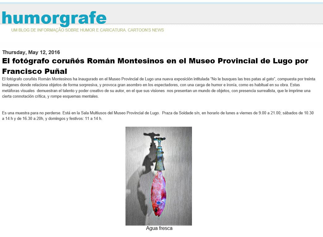 También el blog portugués Humorgrafe, dedicado a la caricatura y al humor, reproduce la noticia de MUNDIARIO sobre la exposición. El autor de la reseña es el periodista Francisco Puñal Suárez.
