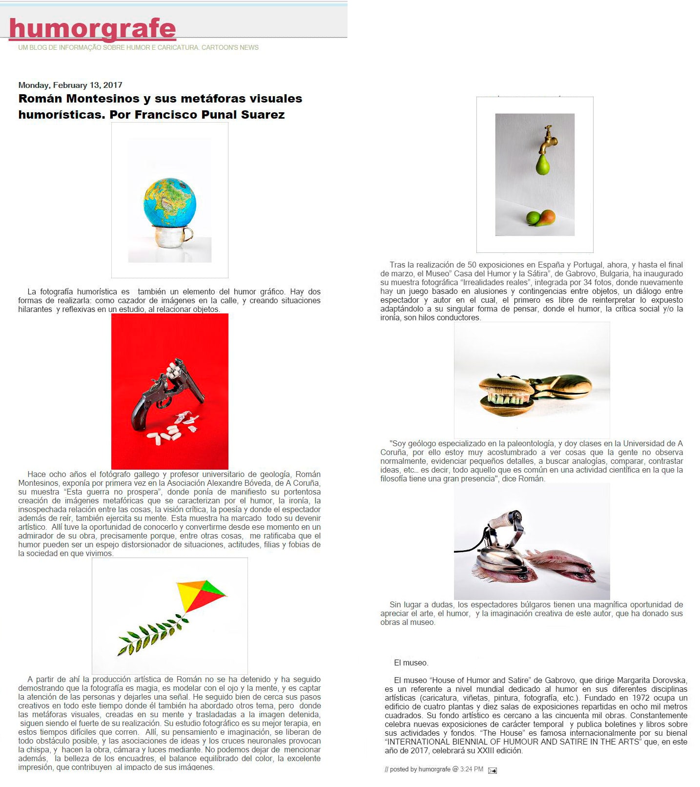 Artículo del periodista y crítico Francisco Puñal en el blog portugués «Humorgrafe«, un espacio dedicado al humor y a la caricatura. En el artículo, el periodista habla de mi trayectoria fotográfica y de mi exposición actual en el museo «Casa del Humor y de la Sátira» de Gabrovo (Bulgaria).