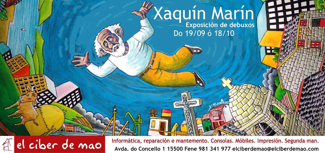 El maestro Xaquín Marín Formoso, genial dibujante y humorista, tendra una exposición que se inaugura el próximo miércoles día 19 de septiembre y se extenderá al 18 de octubre en Fene (Ferrol, La Coruña) en el local del «Ciber de Mao»Xaquín es un clásico en el humor y el fundador del Museo del Humor de Fene. Una cita imprescindible.