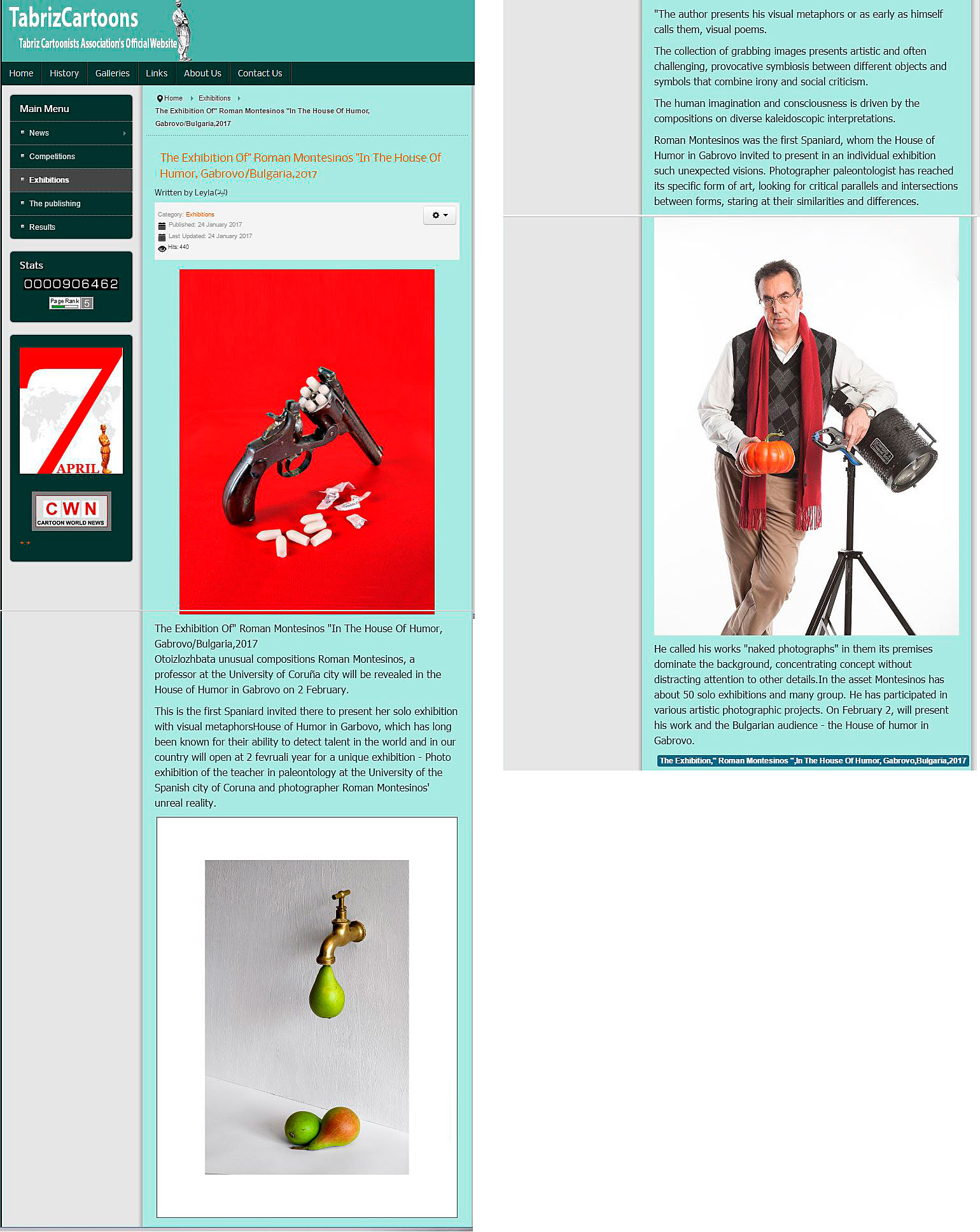 Leila Alaiy gestora del «Tabriz Cartoon Museum» (Irán) ha tenido la gentileza de publicar en el blog del museo de Tabriz la noticia sobre la exposición que inauguro el 2 de febrero en Gabrovo (Bulgaria). Esta exposición viajará a Tabriz para ser expuesta en mayo de 2017. Muchas gracias Leila.
