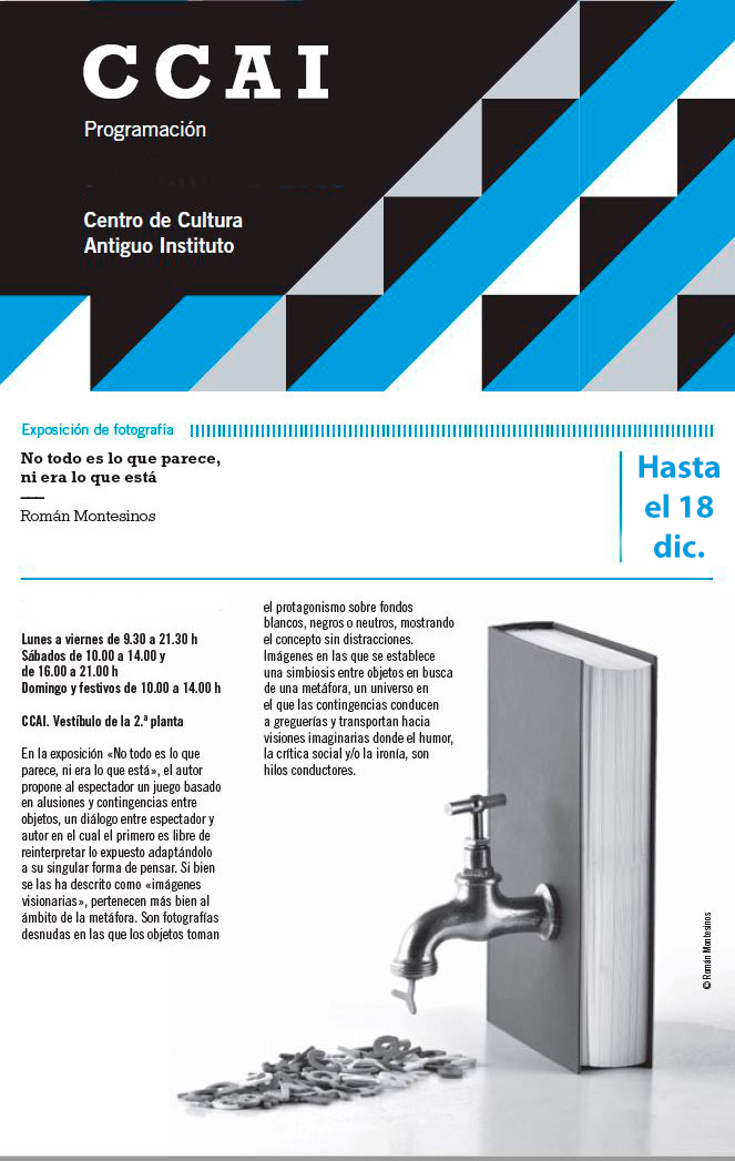 Una buena noticia. «Nada es lo que parece, ni era lo que está» que expongo actualmente en el CCAI de Gijón y que tenía su finalización prevista el 20 de noviembre, se ha extendido hasta el día 18 de diciembre (domingo). Una excelente oportunidad para una mayor difusión de mi trabajo en la ciudad de Gijón. Muchas gracias.