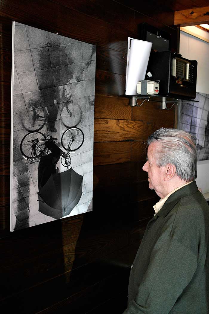 Hoy he tenido la fortuna de encontrarme con Carlos Valcárcel en el Mesón do Forno, en Lugo, y también saludar a Suso Carreira propietario del mismo que además es, con devoción, artista multidisciplinar y mago… lo que no es poco. En la foto Carlos posa delante de una de las fotos de la colección “Espejismos“, cuyo autor es mi amigo José Luis Pérez Fernández, y que aún no agotó su tiempo en el mesón. Los lucenses que no la han visto aún están a tiempo.