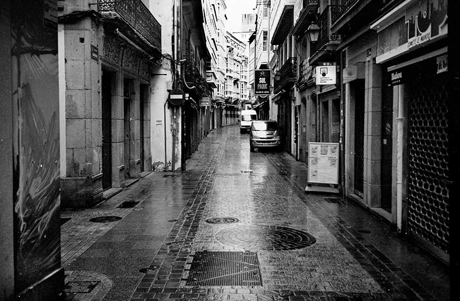 Es por la mañana de un día normal de finales de invierno. La calle está desierta por la lluvia y el temporal que azotaba La Coruña en esos momentos. La quietud es aparente ya que se trata de una de las calles más concurridas de la ciudad como espacio lúdico. Es un reservorio de Baco, pulpo y tortilla de patata. La Barrera forma parte del «nucleo duro» de la ciudad; una zona que no ha perdido su tradición a lo largo de los años: las centrales calles de «los vinos»: La Franja, Barrera, Olmos y Estrella. Una vorágine de gente los fines de semana y al atardecer. Visita más que obligada si vienes a La Coruña.