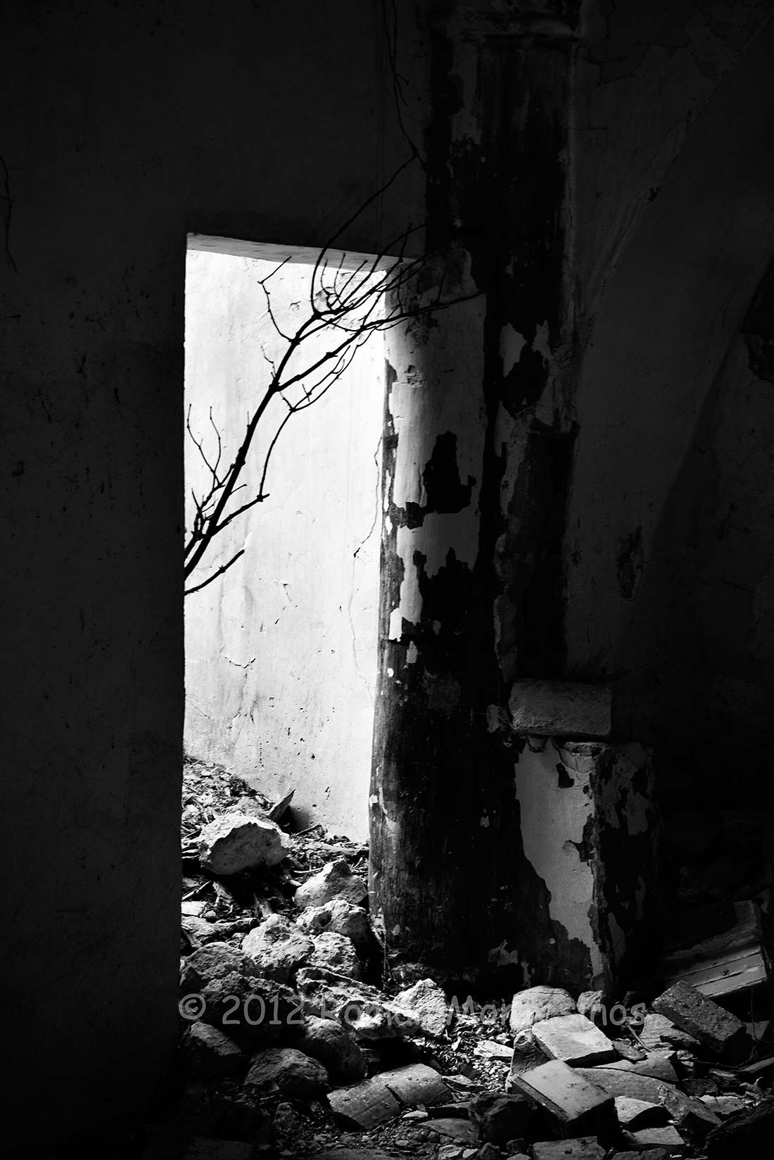 Una rama seca se asoma por la puerta de la antigua sacristía de lo que queda de la iglesia burgalesa de Quintanilla Cabe Soto (norte de la provincia de Burgos). Es una iglesia situada en un cerro y se encuentra en un estado total y absolutamente ruinoso. En su interior solo hay cascotes y un suelo totalmente levantado debido al expolio de las tumbas. Son cosas que duele verlas…