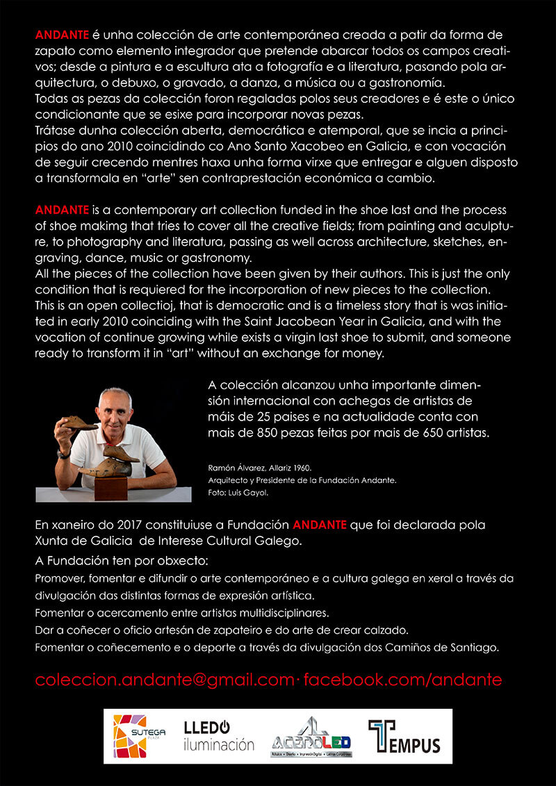 Con el nuevo año la colección ANDANTE calzará con fotografías las paredes del Monty Ambigú de La Coruña. El proyecto del arquitecto Ramón Álvarez ofrecerá al público aquellas obras fotográficas que integran su gran colección de hormas de zapato. Una excelente ocasión para brindar con ANDANTE y saludar al 2018 en un ambiente más que acogedor.