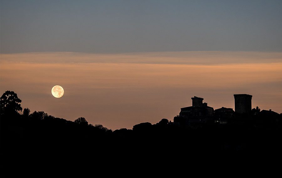 Si la entrada anterior del blog era Verín visto desde el castillo de Monterrei, esta es al contrario: el castillo visto desde Verín al amanecer y con la puesta de la súper Luna.