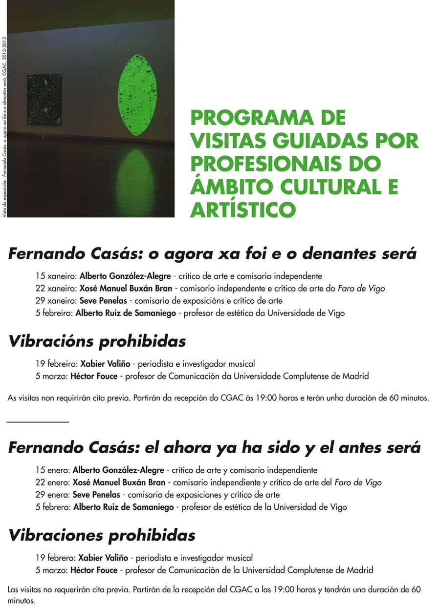 Para no perderse en los entresijos del arte el CGAC organiza visitas guiadas. Me gustaría más haber leido «técnicos del arte», o similar, por aquello del amor al arte… pero comprendo que de algo hay que vivir…