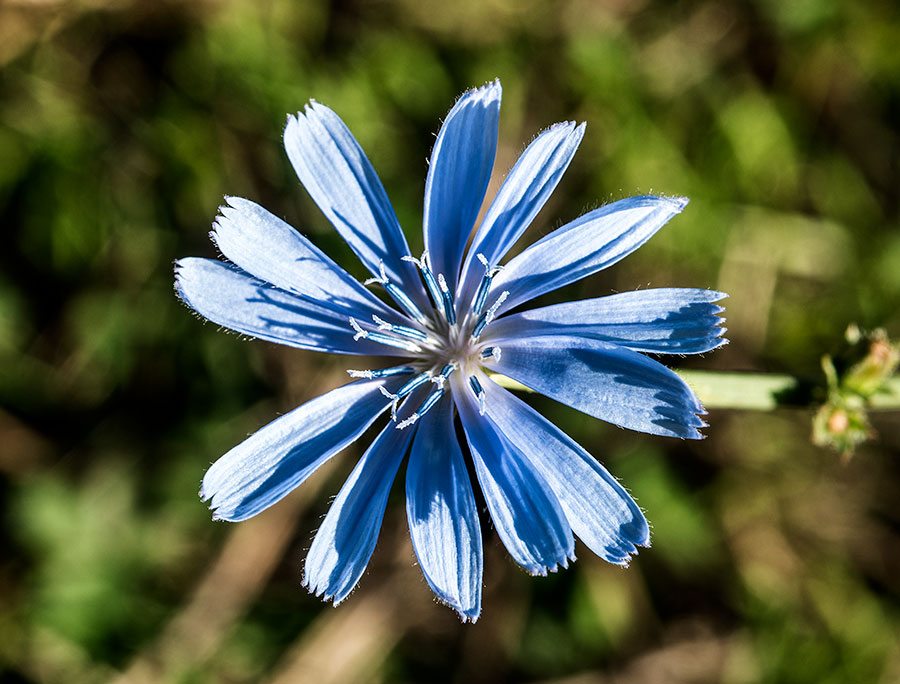 No es que ponga la foto de esta flor, que científicamente se denomina Cichorium intibus, y que, vulgarmente, recibe el nombre de achicoria (sí, la achicoria que se usa para dar fuerza al café o que antaño era sucedáneo de él), la pongo por una prueba hecha con un objetivo fotográfico. La achicoria es una humilde planta que crece en las lindes de fincas o en los bordes da caminos en zonas de clima continental con una humedad moderada.