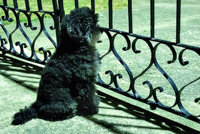 Se llama Coco y es uno de mis dos perrillos (perro y perra de la misma raza). Ocurre que el noble Coco es el macho y es negro, mientras que mi perra, que se llama Luna, es blanquilla. Estos días de vacaciones en el pueblo Coco se enamoró de una perra del lugar y él, en una interpretación inversa de don Juan Tenorio ya que estaba en el interior de la verja, esperaba durante horas pacientemente que su amor se acercase o pasase por delante de la casa. Un par de días hubo suerte otros, como esta madrugada pasada, no. Ya la habrá…