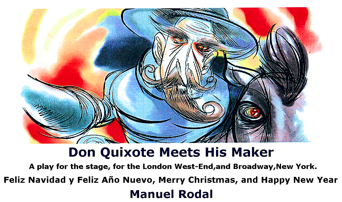 Manuel Rodal es cineasta y actor de teatro y cine (El aura, por ejemplo). Inaugurará en breve un espectáculo en Broadway y en el West End londinense inspirado en El Quijote. Me ha hecho llegar una felicitación navideña basada en el espectáculo que, en su nombre, hago extensiva a todos los lectores de este blog.