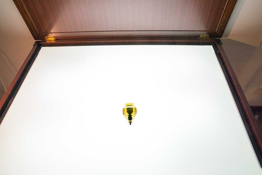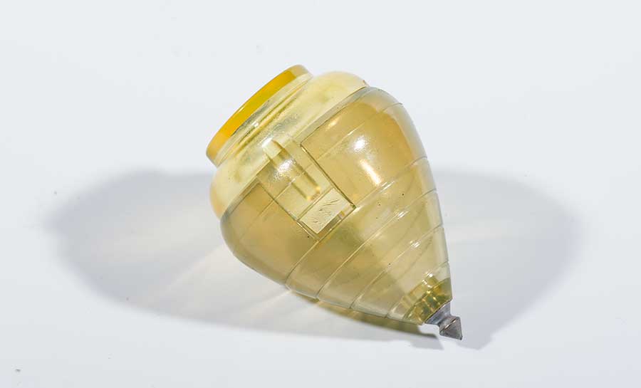 En el caso de la peonza se trata de un artilugio hueco que contenía caramelillos o pequeños «chuches». Un peón metido en su interior y poniendo el conjunto sobre la mesa de transparencias da el efecto (por la ausencia total de sombras que se puede comprender) de que la peonza está «colgada» en un espacio blanco. No hay más «truco». El hambre aguza el ingenio y para un problema se pueden obtener multitud de soluciones. No hay más que lo que cualquier neurona puede producir.