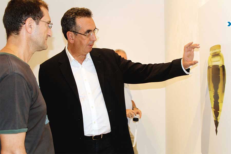 Explicándole a un asistente a la inauguración de la expo de Madríd el «cómo se hizo» la foto. Foto: Departamento de Prensa de la Casa de Galicia,