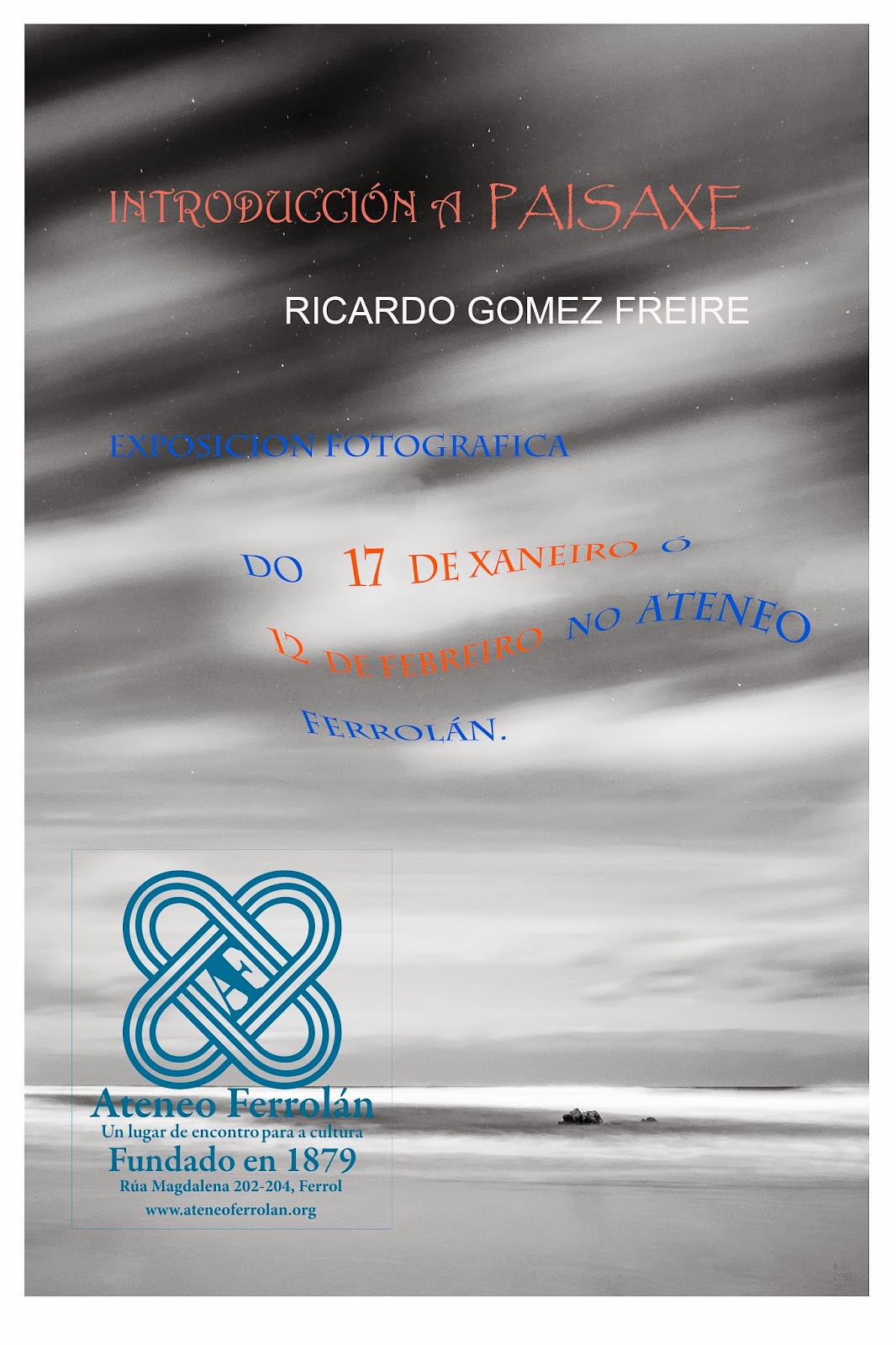 Una nueva muestra fotográfica se inaugura el próximo día 17 de enero en el Ateneo Ferrolán (Ferrol). El título de la muestra es «Introducción a paisaxe» de Ricardo Gómez Freire y consta de 11 fotografías del entorno ferrolano: Meiras, Valdoviño, Fraga del Eume, y otros parajes. La inauguración será el día 17 a las 20 horas y la exposición permanecerá abierta al público hasta el 12 de febrero.