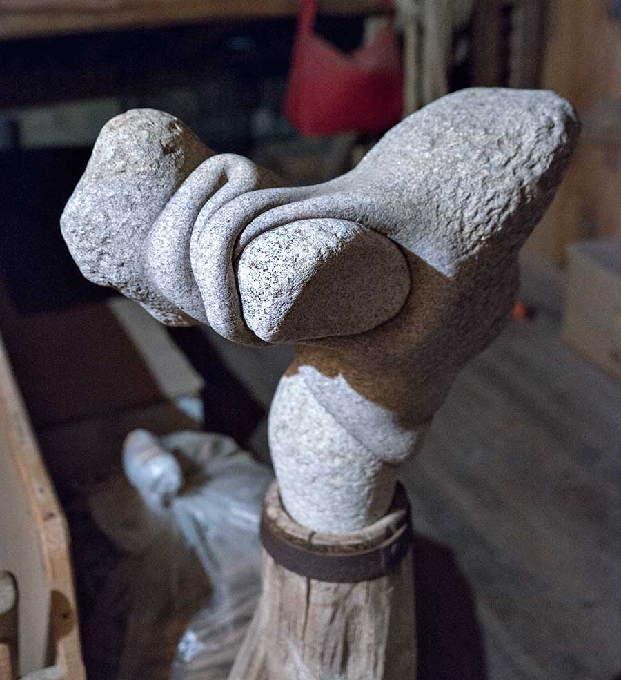 El trabajo de José Manuel es maravilloso. La tenacidad de su voluntad, y la dureza de las herramientas que usa, son capaces de doblegar la materia haciéndola adquirir las formas más inusitadas y diversas. Desde el cincel a la motosierra o desde la corona de diamante a la pulidora las rocas -las piedras- cobran otra dimensión. Adquieren vida.
