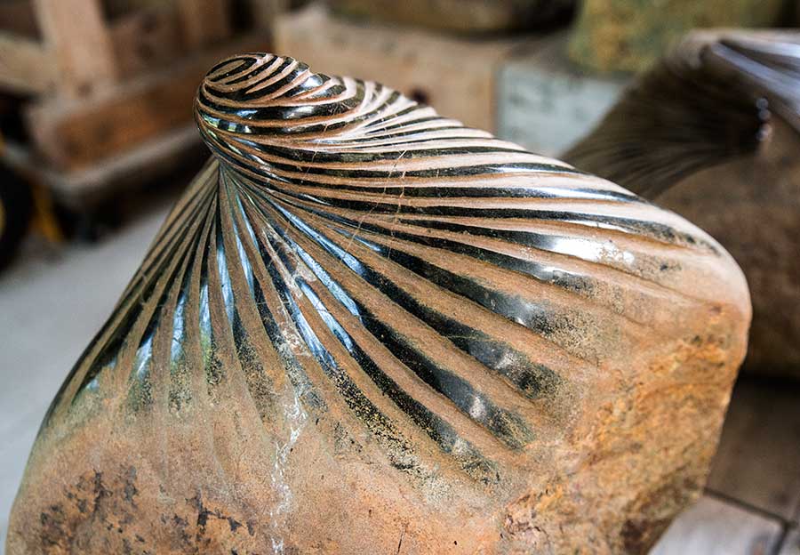 La cuarcita, el gneis, el granito o la madera se tallan pulcramente, pacientemente, hasta que adquieren su forma. Materiales nobles que que se incurvan, se pliegan, tales que hojas de un libro. Son tan plásticas que hasta parece que se pueden pellizcar.