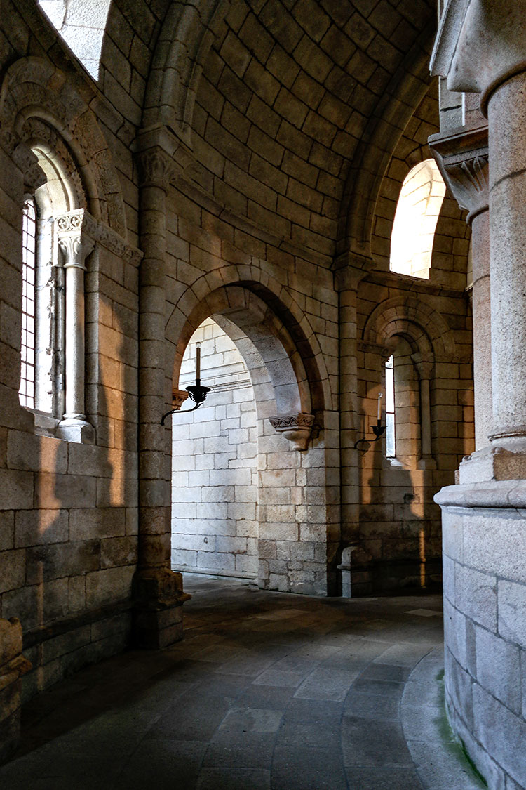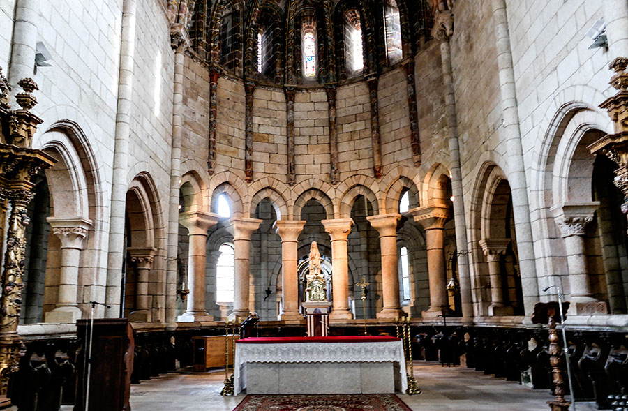 El coro está sustentado por una prodigiosa bóveda plana de puro granito. No se las toneladas que pesa esa bóveda pero realmente es meritoria y digno de admirar que se sostenga desafiando la gravedad y el paso del tiempo.