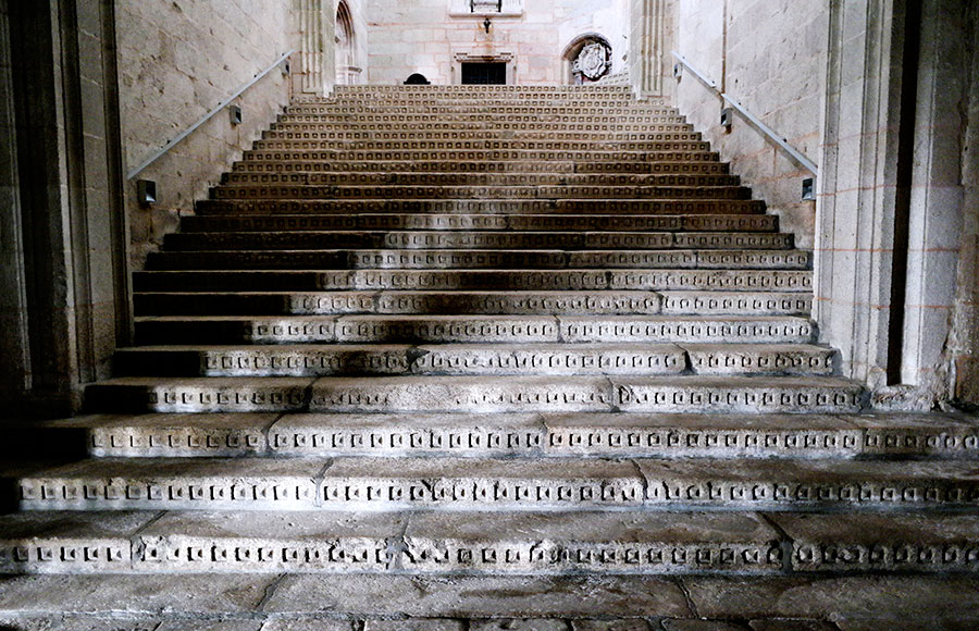 Es impresionante. De estilo herreriano los peldaños están ornados frontalmente por puntas de diamante. Fue construida a mediados del siglo XVII.