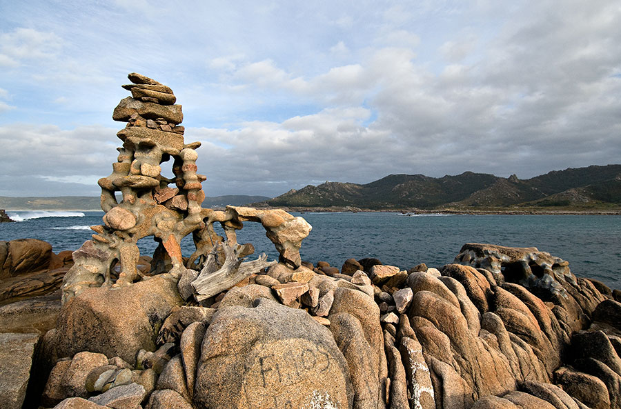 Nunca tuve claro si Manfred Gnädinger, conocido como Man, era un visionario, un artista o un artista visionario. El caso es que este alemán llegó un buen día de principios de los años 60 a Camelle (Costa da Morte) y ahí se quedó hasta su fallecimiento en diciembre de 2002, un mes después del hundimiento del infame Prestige y de su marea negra. De hecho, la obra de Man en Camelle estaba ubicada en una plataforma rocosa azotada por los temporales y, en este caso, muy afectada por el petroleo derramado. Este hecho quizá tuvo que ver con la sensibilidad del artista y su fallecimiento prácticamente inmediato a la marea negra.