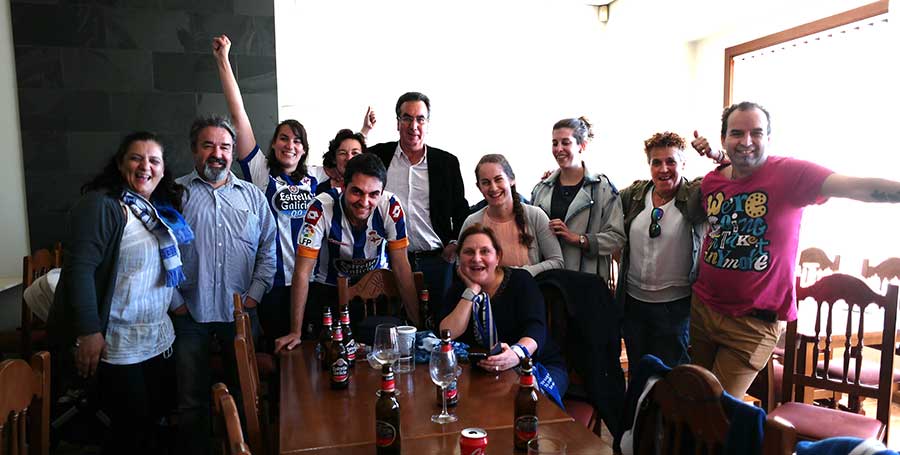 En las fotos algunos miembros de la Peña Deportivista A Gaiteira celebrando el resultado tras la finalización del partido.