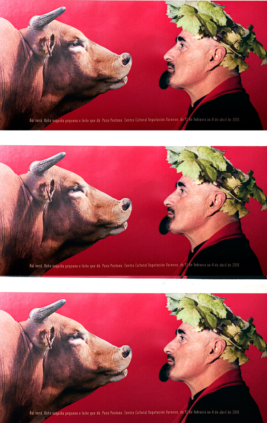 Paco Pestana es escultor, poeta y otras veleidades artísticas además de «ingeniero hidráulico» ya que se pasa la vida de «fontiña» en «fontiña». Polifacético y multicultural es uno de los bastiones del mundo artístico lucense. Las fotografías de más abajo recogen distintos elementos del estudio-taller de Paco además de una composición en triplete de un retrato suyo que luce en el local del Mesón do Forno, en Lugo, y dedicado a Suso Carreira.