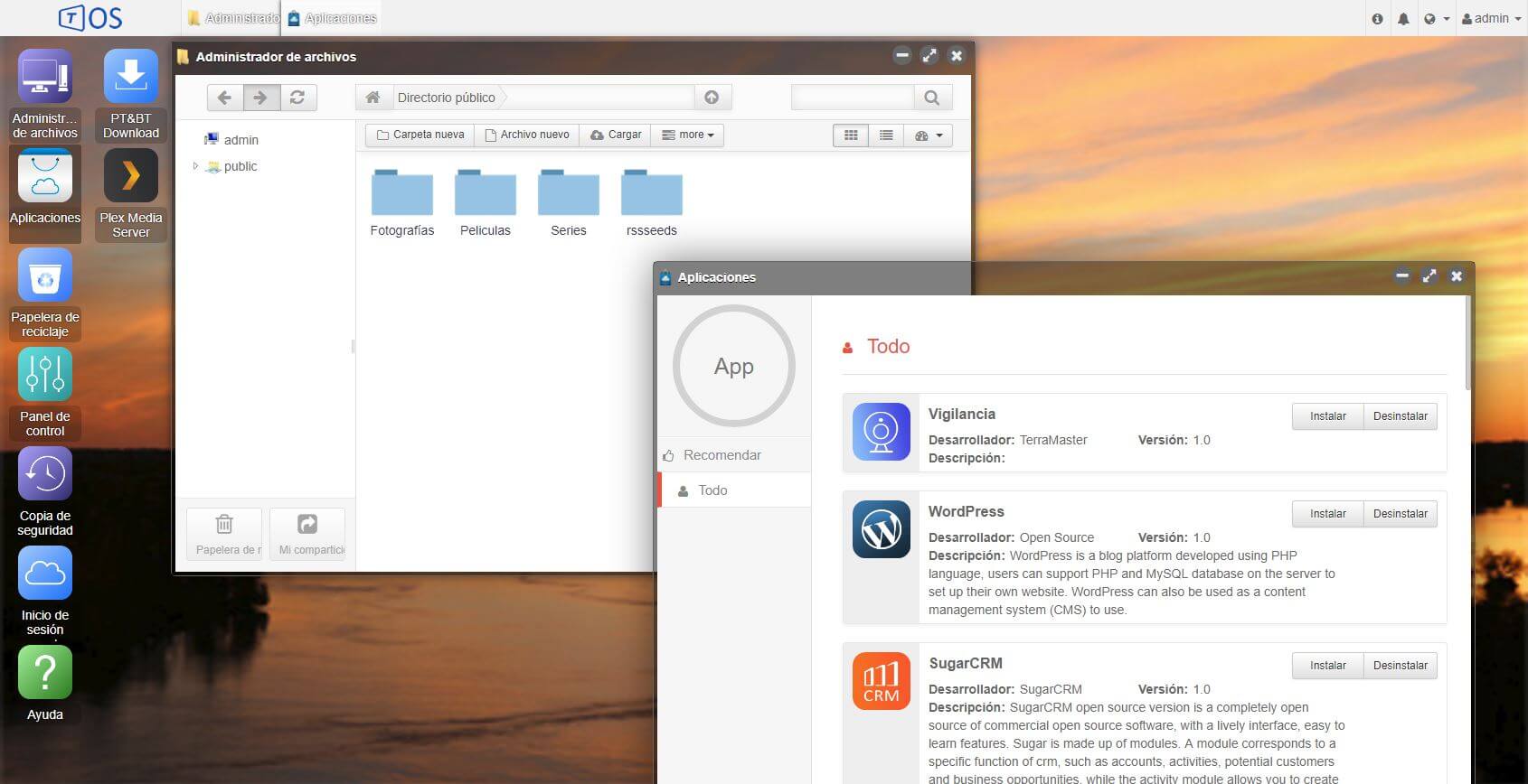 Funciona a través de un sistema operativo basado en Linux que Terramaster denomina TOS al que se accede a través de un navegador. Es extremadamente fácil de instalar sin tener conocimientos previos de ningún tipo. La instalación, en todo momento, es guiada paso a paso por medio de un entorno gráfico «amigable». La configuración es muy sencilla y, de hecho, tal que se instala ya está listo para funcionar. Luego, si queremos, podemos instalar diversas APPs (Plex, por ejemplo) que, sin ser muchas, son suficiente y sobradas para un usuario normal.