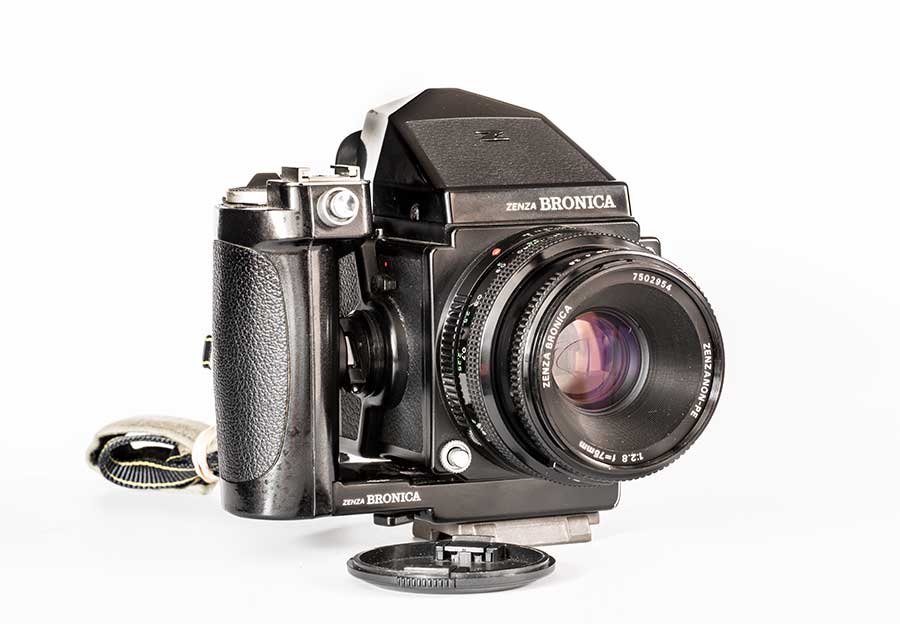 Hoy se ha posado en mis manos una cámara de formato medio: la clasica Zenza Bronica ETRS con un objetivo Zenzanon PE 75mm/2,8, empuñadura y un chasis para película de 220. Es una cámara que ya he tenido en el pasado y que me ha gustado recuperar. De hecho, le tengo cierto «cariño», ya que con una gemela hice mi primer reportaje de boda. Es una cámara con un objetivo de gran rendimiento, muy robusta y sencilla de usar. La quiero para realizar alguna fotografía en blanco y negro analógica y agún experimento más. Lo único que se le puede achacar es que tiene el formato más pequeño dentro del formato medio: 4½x6 (la SQ de Bronica ya es de 6×6) pero para experimentar vale más que perfectamente.