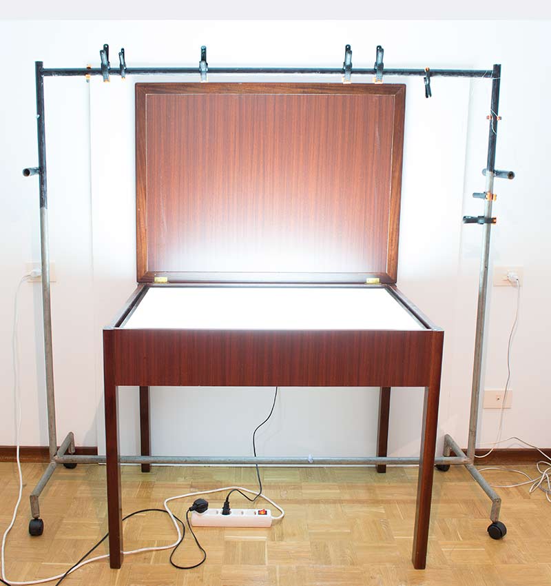 Hoy ha sido un día con suerte, Un amigo me ha regalado una mesa de luz, de las que se usan en planimetría y ciencias afines. Lo bueno del caso es que tiene una aplicación 100% fotográfica como sistema de iluminación inferior de objetos: pequeños bodegones, por ejemplo. La mesa de luz es un elemento que hace bastantes años rondaba por mi cabeza pero ha sido un proyecto que nunca emprendí. Ahora se me abren nuevos senderillos de exploración fotográfica. Gracias Fernando si es que lées ésto. Te debo unas cuantas infusiones de tila alpina…