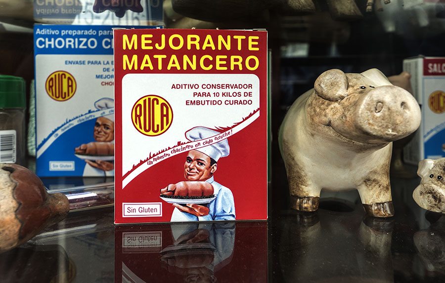 León conserva ese sabor tradicional que no se ve en otras partes o ciudades. En el «barrio húmedo» proliferaban las tiendas dedicadas a conservar los embutidos pero, con el tiempo, muchas han desaparecido. Este lunes pasado, paseando por el barrio vi que aún se conservaba una en cuyo escaparate ofrecían diferentes productos relacionados con la matanza. Me llamó la atención un envase en que un producto ofrece conservar los embutidos. «Sin gluten» pone la caja… pues ya no hay excusa.